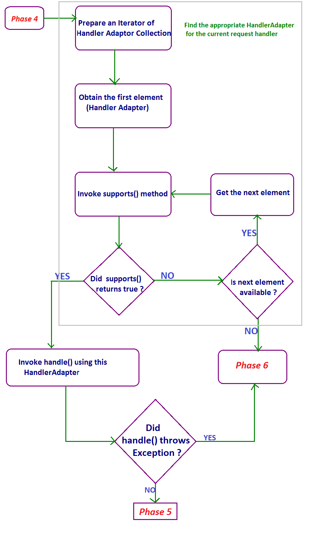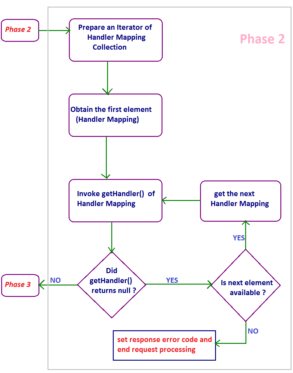 - Preparing an Iterator object of the Collection, storing the HandlerMapping objects.