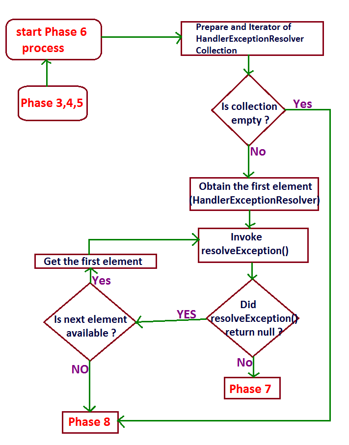 - If the HandlerExceptionResolver in phase 6 returns a valid (not null) ModelAndView object reference.